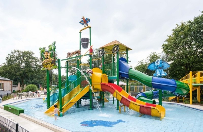 The swimming pool at our children's campsite consists of three pools. The largest pool is 30 cm deep and has a large water playground with no fewer than four slides. The other pools are 80 cm and 140 cm deep.